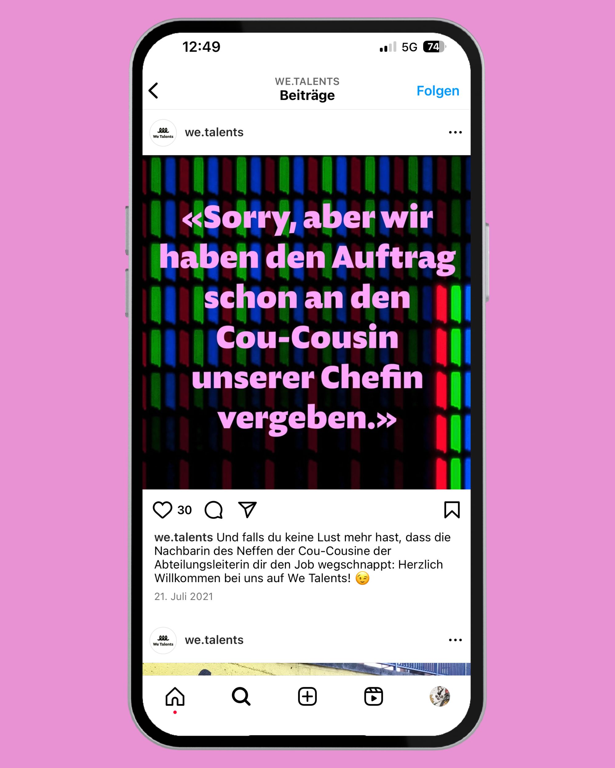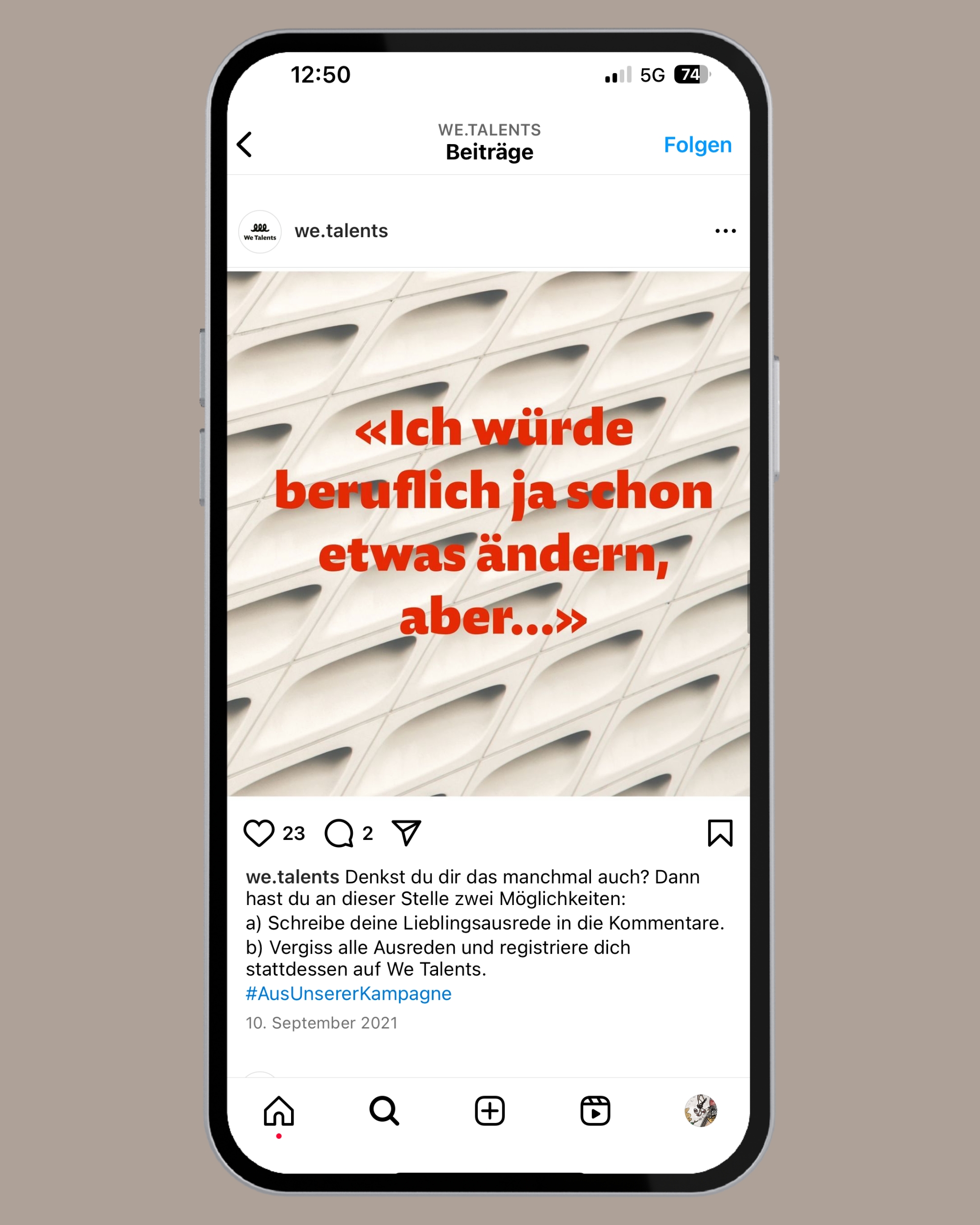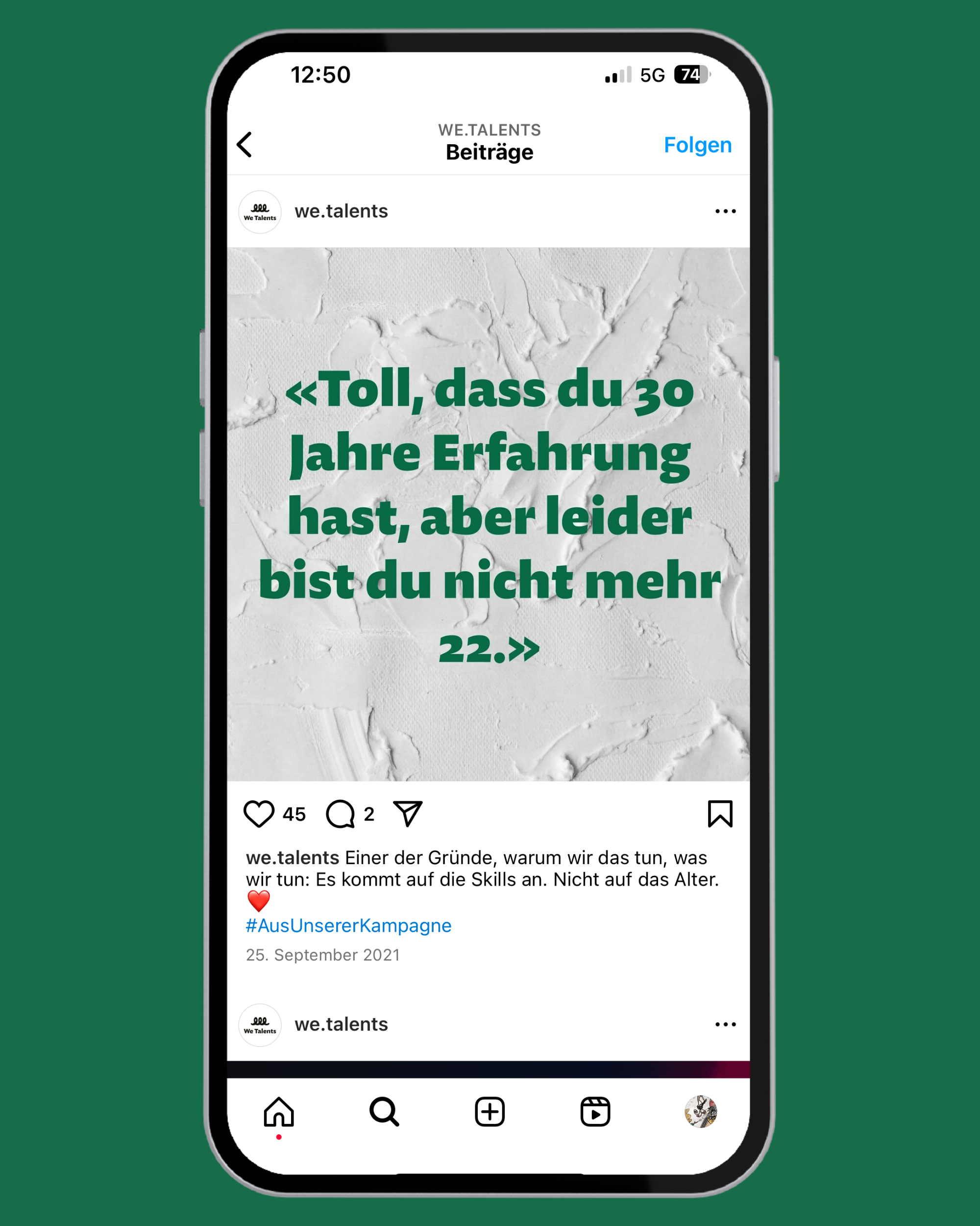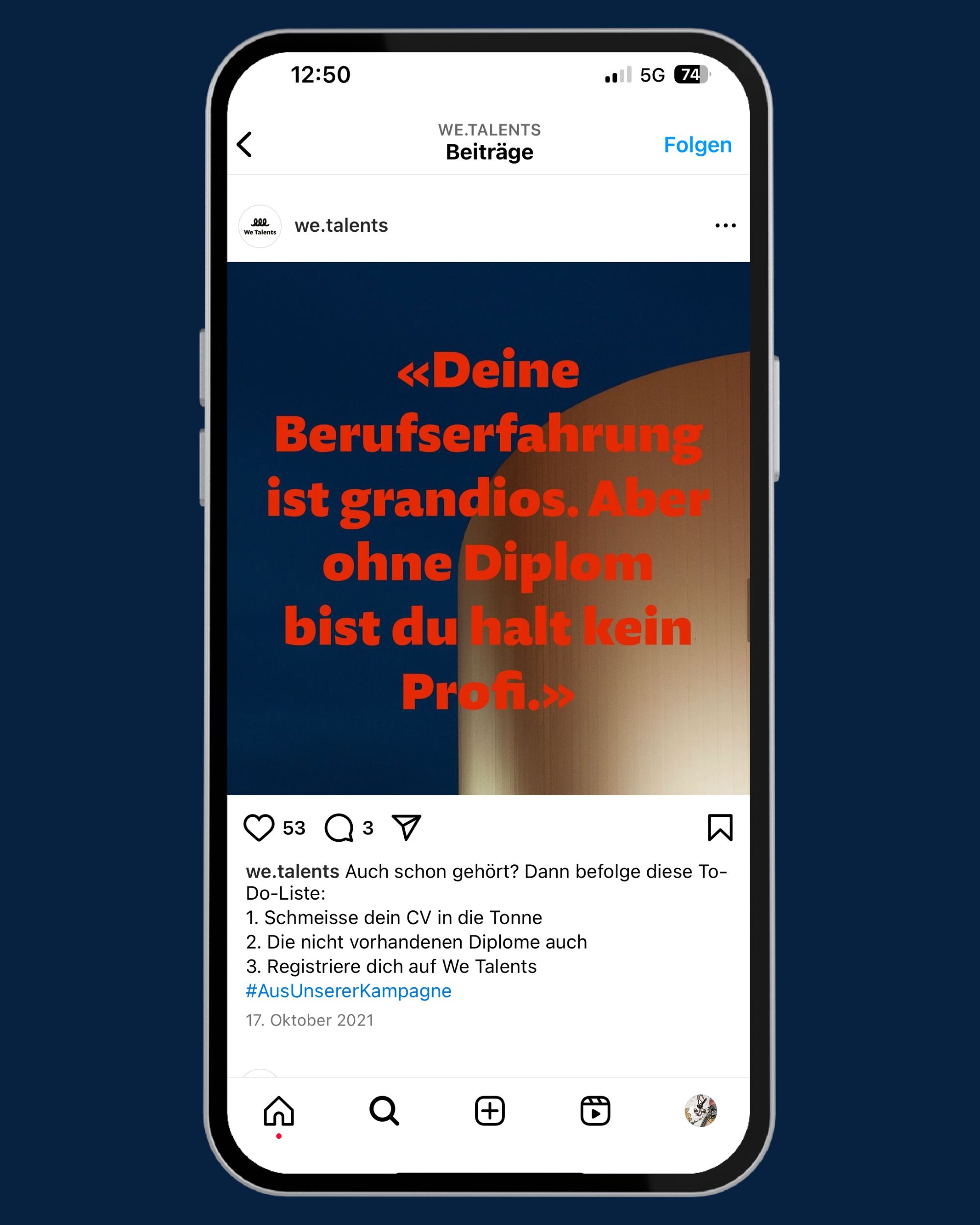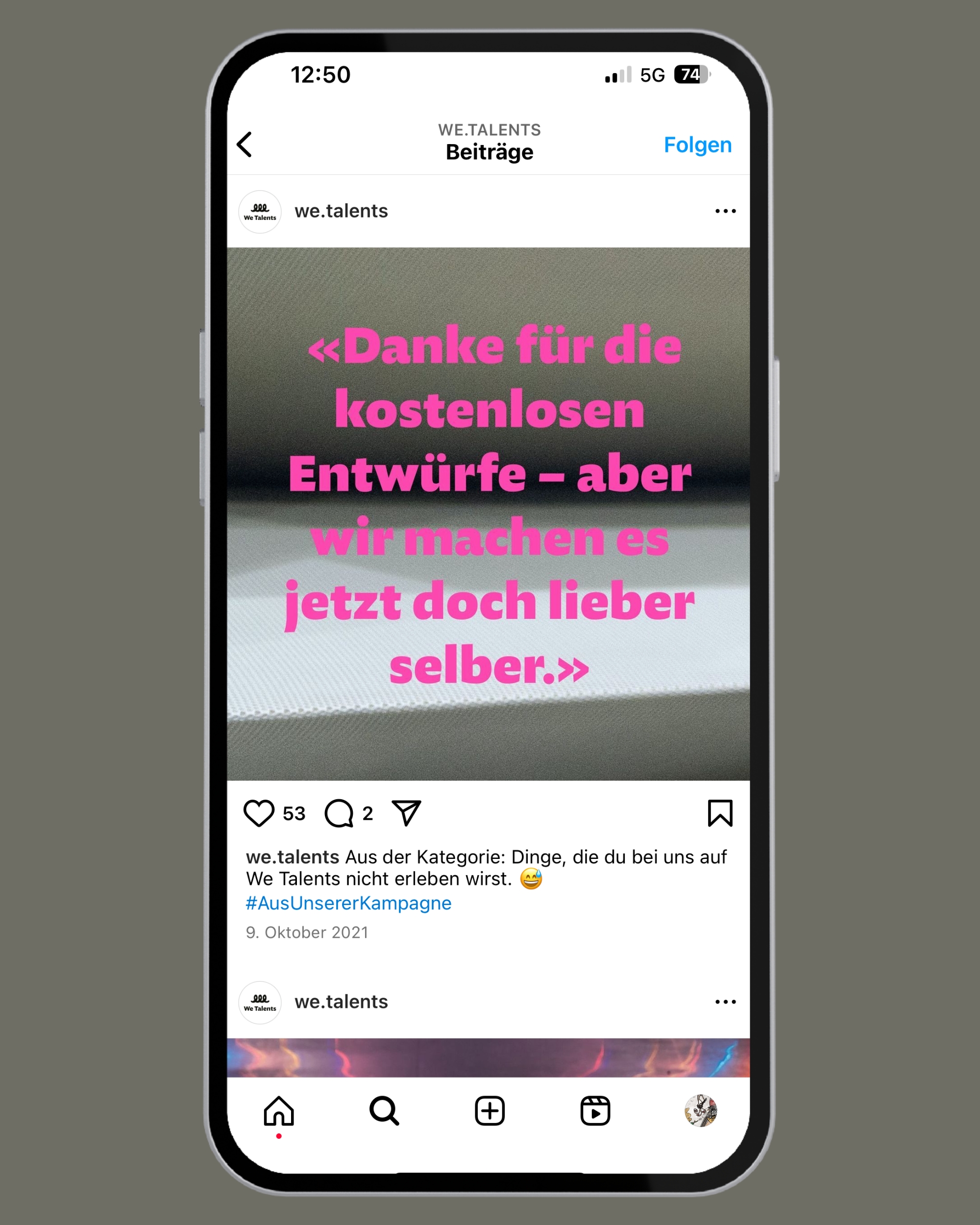 We Talents ist eine New Work Skillsharing-Plattform, die Menschen und Unternehmen aus der Kreativbranche die Möglichkeit bietet, sich basierend auf ihren individuellen Skills für verschiedene Projekte zu vernetzen. Im Rahmen der Unternehmensgründung braucht es eine durchdachte Launch-Kammpagne. Gut, «durchdacht» war jetzt nicht das Wort, das dabei verwendet wurde, aber irgendwie wäre es dämlich eine Kampgne zu machen, die das nicht ist. Du weisst schon, was ich meine.